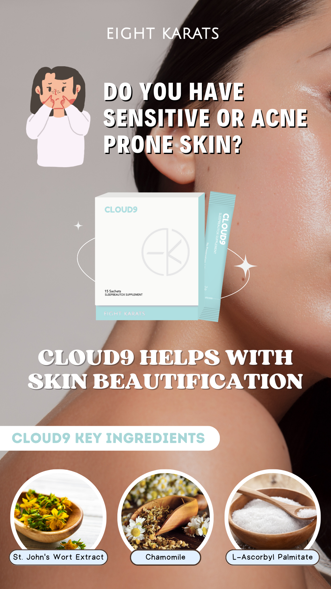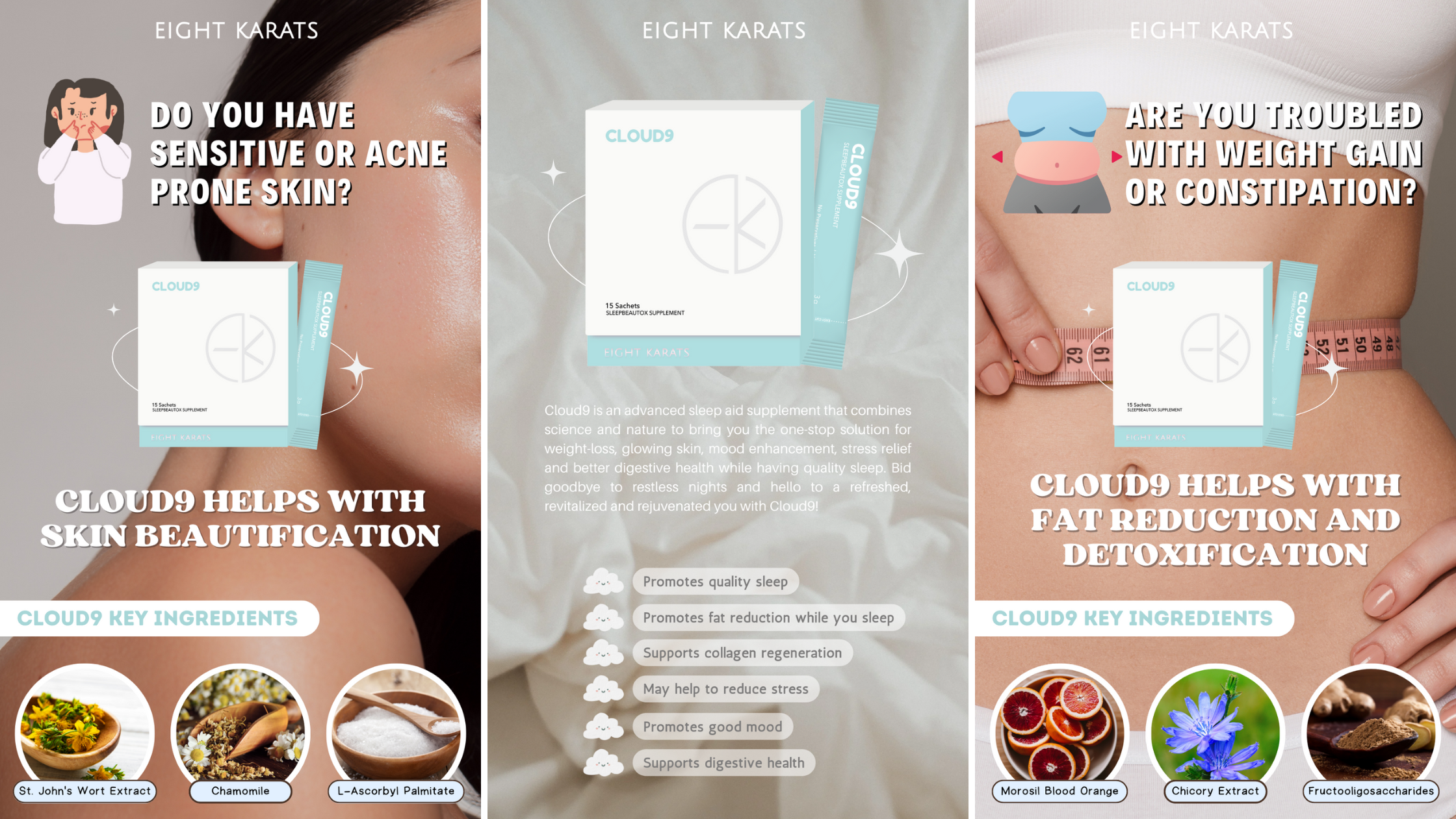 Cloud9 is an advanced sleep aid supplement that combines science and nature to bring you the one-stop solution for weight-loss, glowing skin, mood enhancement, stress relief, and better digestive health while having quality sleep.